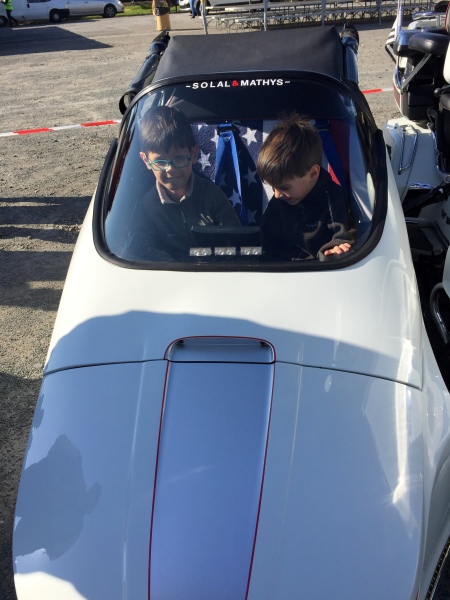 circuit long de 90 km qui accueille pour la première fois un groupe formé d’enfants et d’adultes, malades ou handicapés, qui profitent de la balade à bord de side-cars.