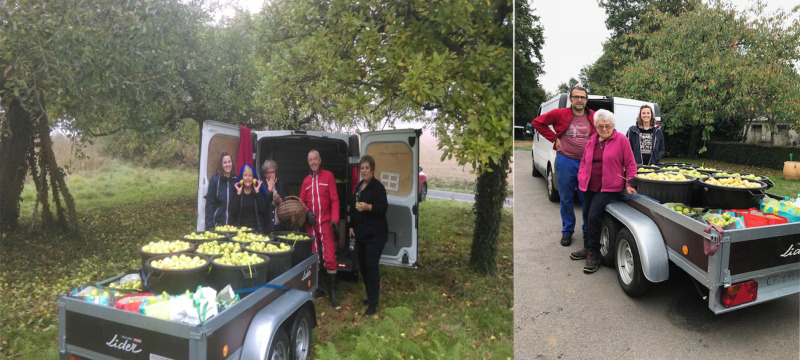 Bravo aux bénévoles de ô ma vie qui se sont mobilisés pour ramasser 850kg de pommes qu'ils ont transformés en jus de fruit, et ensuite revendu au profit de l'association.