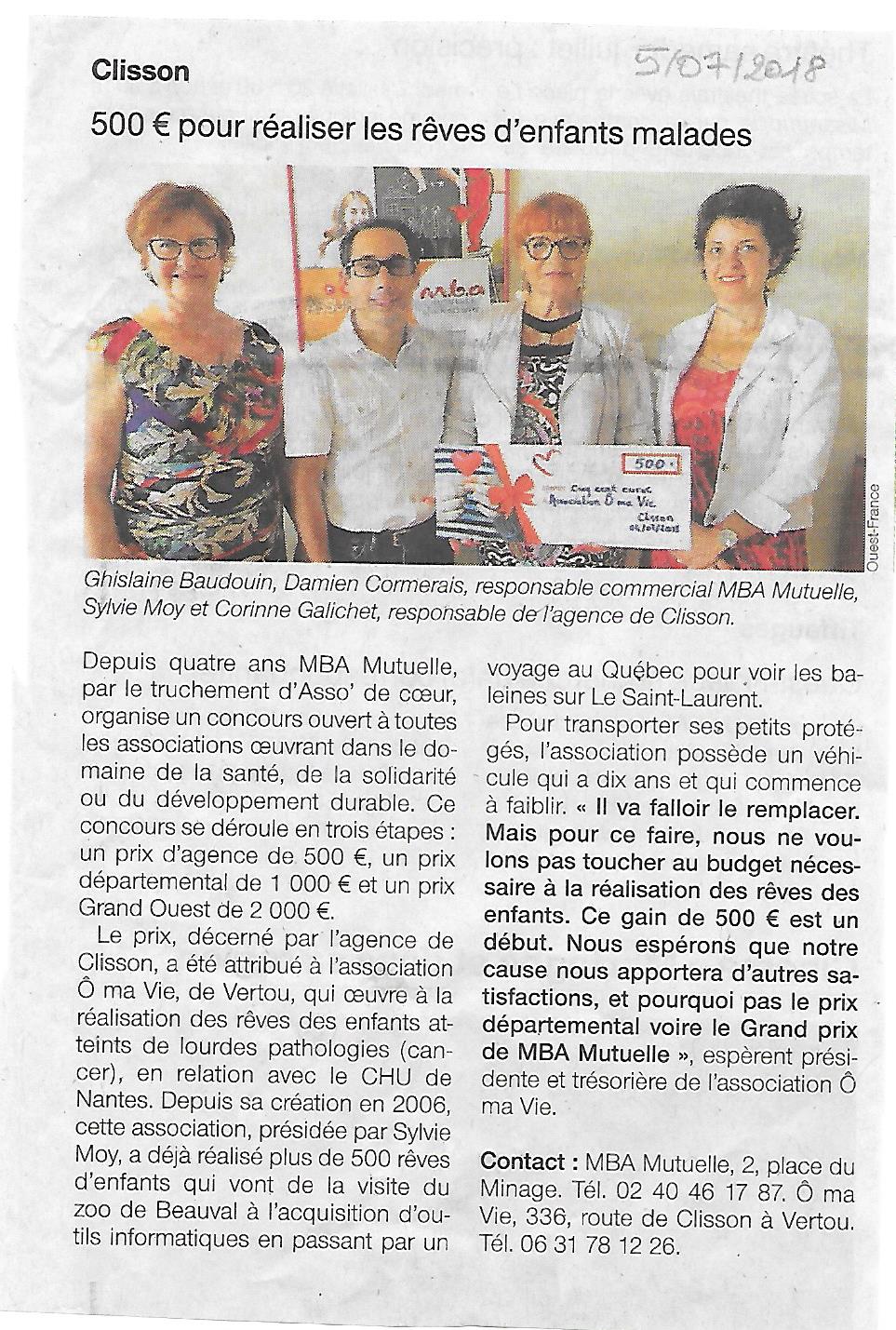 Remise de chèque de la MBA Mutuel, agence de Clisson