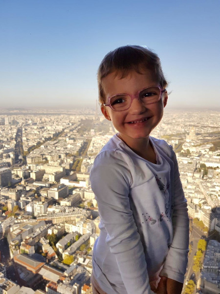 Anaë après avoir fait avec sa classe un spectacle sur Paris et ses monuments en fin d'année a voulu voir les toits de Paris du haut de la tour Eiffel.