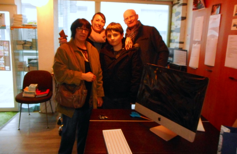 MANY 13 ans est venu accompagné de sa maman et sa mamie chercher son I MAC à la permanence d' O MA VIE vendredi 26 janvier. C'était un petit NOEL en Janvier dès que MANY a vu le grand carton contenant son ordinateur. Ses mercis pour l'association étaient grands d'émotion. En plus, Sylvie la présidente lui a remis quelques cadeaux pour ses cousins et sa cousine.