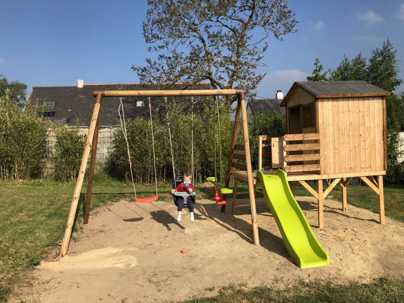 Au mois de décembre Ferdinand a reçu la livraison de la structure de jeux de plein air qu'il imaginait dans ses rêves.Les beaux jours étant arrivés, toute la famille se remonte les manches pour l’installation de l'ensemble très complet de cet ensemble de jeux pour le plus grand bonheur de Ferdinand.Merci à la société Soulet pour son aide .