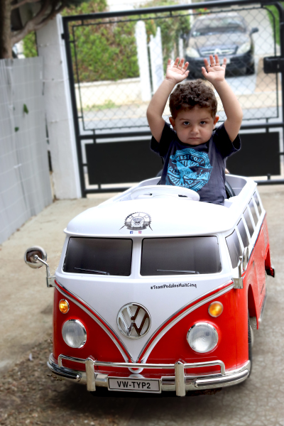 Pour le faire patienter l'association a décidé de lui offrir un magnifique Van qu'il va pouvoir conduire seul dans le jardin.